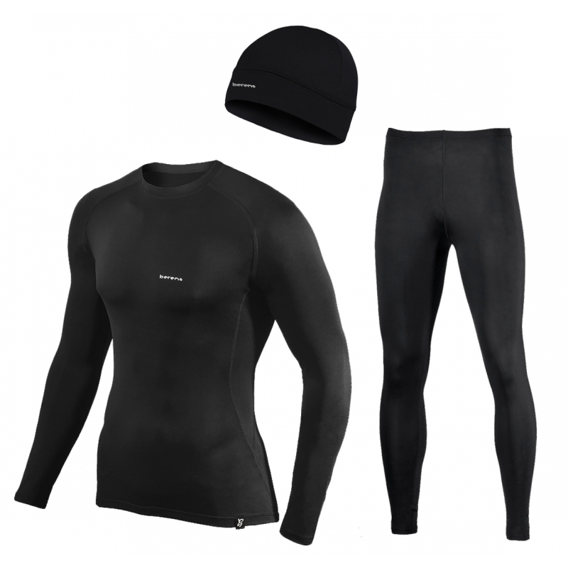 Komplet bielizny termoaktywnej męskiej (koszulka z długim rękawem + legginsy + do wyboru: czapka lub kominiarka) Berens BASEPROTECT - polecamy jako pierwszą warstwę ubioru termoaktywnego. Bielizna ta dedykowana jest do aktywności z dużą ilościa ruchu i wysiłku lub na niezbyt ciężkie warunki zimowe (zakres użycia: -5 st.C do + 5 st.C)