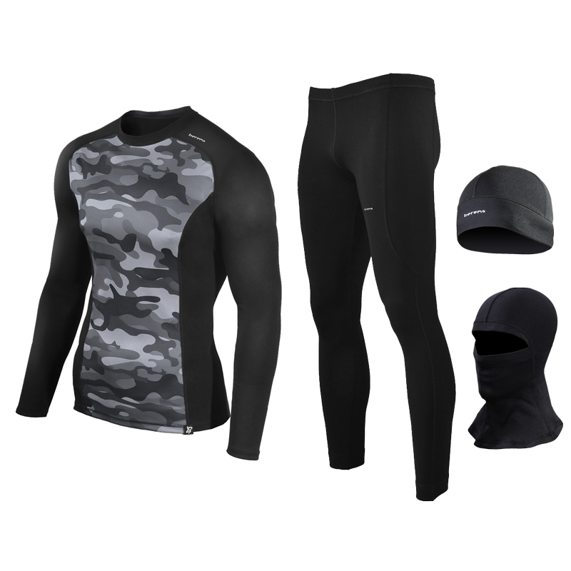 Sportowa bielizna termoaktywna męska (koszulka z długim rękawem + legginsy + gratis: czapka lub kominiarka) Berens BASEPROTECT z kamuflażem moro szare, dedykowana jest do aktywności sportowych jak np. bieganie, narty, rower w temperaturze -5 st.C do 5 st.C